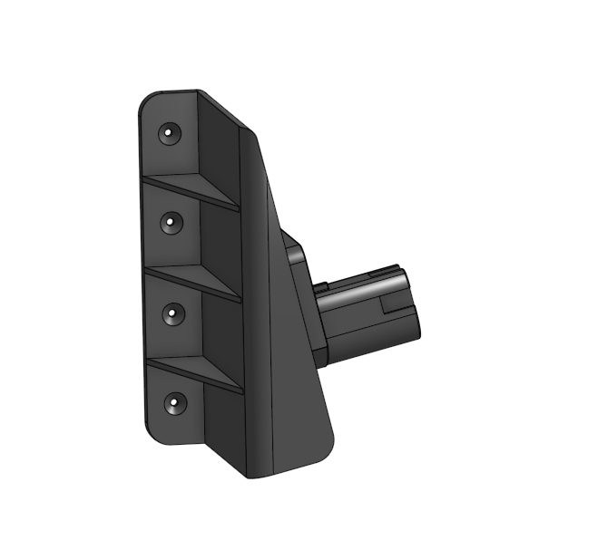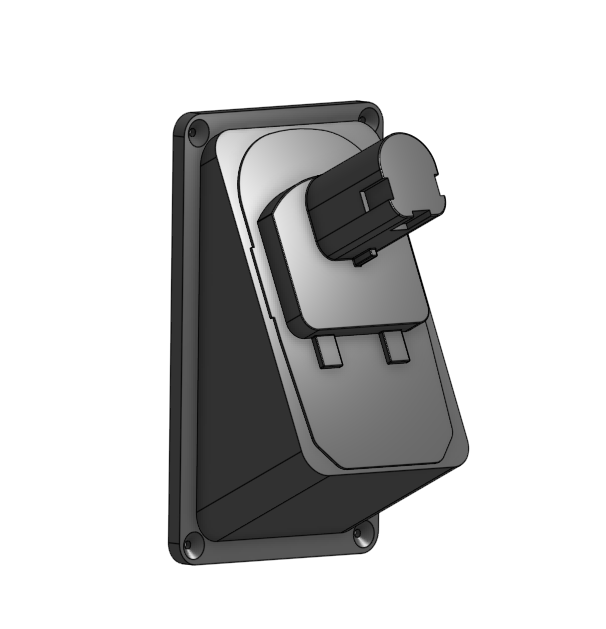 Next step was to design the CAD files. Since I’m using a popular tool brand, I was able to find existing designs for the battery connector section, which is common to all Ryobi One-plus series tools. Thus, I only had to frame this design correctly so that it cold be attached to the wall correctly.